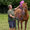Abstellen des Pferdes mit allen vier Hufen auf einer kleinen Decke