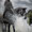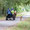 zu Pferd einen Regenschirm nehmen und aufspannen