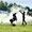 einen Gymnastikball mittels Stock als liegende Acht um zwei Hütchen rollen