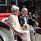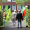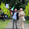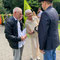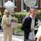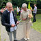 Zylindrisch gut behütet übernahm Reiner Bramkamp die Aufgabe, das von André und Klaus Plägener kunstvoll geschmiedete Hochzeitsgeschenk zu überreichen, während Reiter und Fahnenträger das Brautpaar hoch leben ließen.