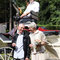 In der zur Prüfung gehörenden Pause wurde die Prüferin Gaby Schwerter zu lecker "Hohe Mark Eis" eingeladen. Dennoch mussten die Prüflinge auch hier ran. Es galt, diverse Knotentechniken zu zeigen, Hochseile und Nothalfter zu binden sowie vermeintlich gerissene Zaumzeuge fachlich korrekt für den Weiterritt zu reparieren.